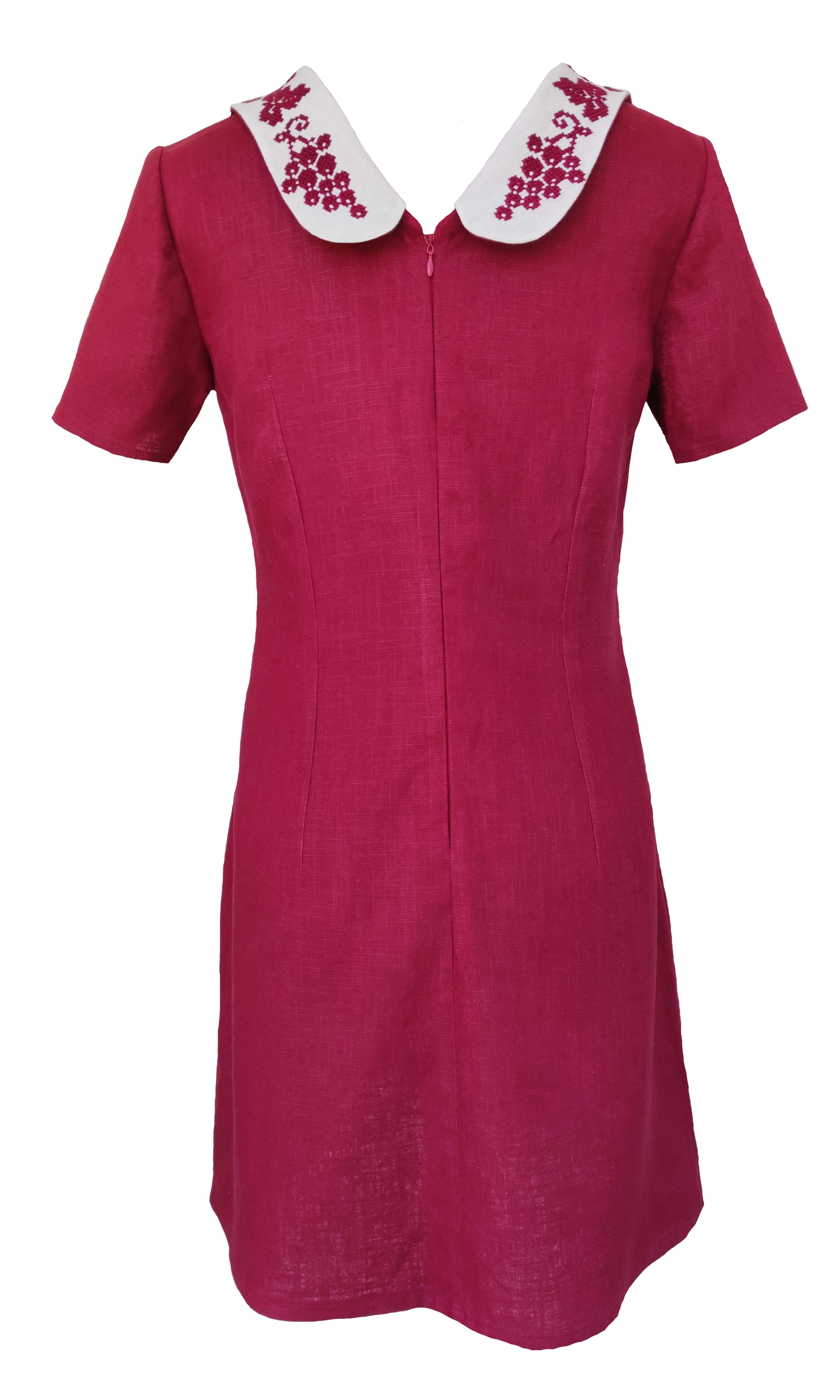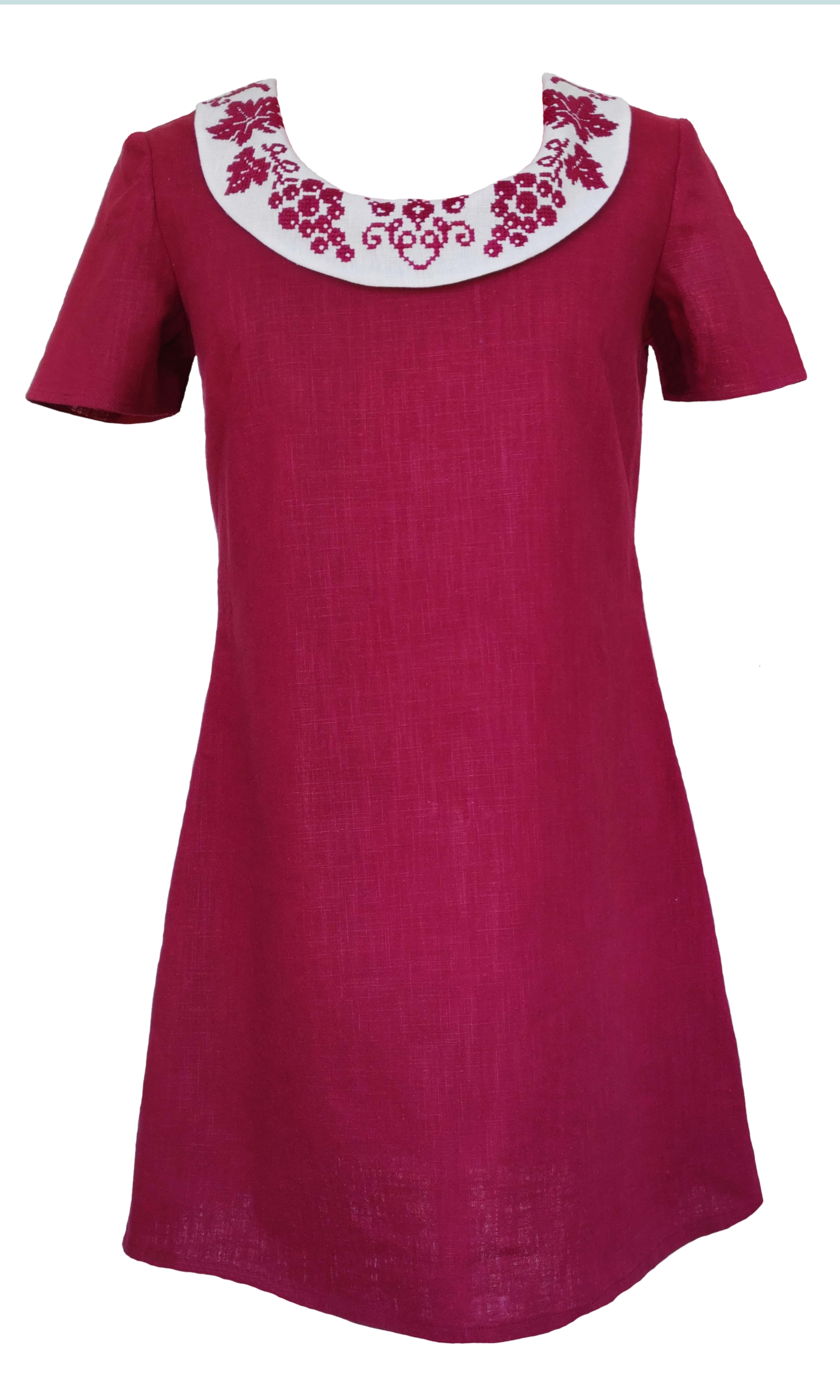 Robe en lin couleur bordeaux inspirée des années 70, ornée d’un col brodé de motifs raisins pour une touche vintage et raffinée. Le style rétro associé à la broderie détaillée crée une pièce unique et intemporelle. Parfaite pour celles qui aiment le charme des époques passées.
