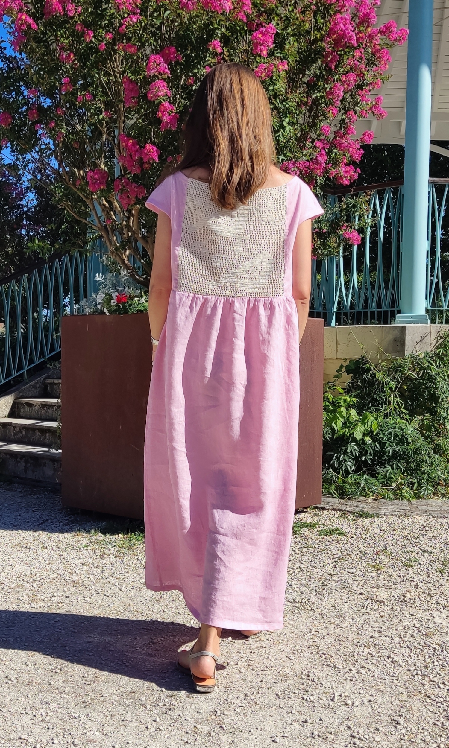 Cette robe rose en lin à dos et poches crochetés à la main incarne l’esprit bohème avec élégance et charme. Son tissu léger et respirant offre un confort inégalé, parfait pour les journées ensoleillées. Le dos délicatement crocheté ajoute une touche artisanale unique, faisant de cette pièce une création originale. Ses lignes fluides et sa silhouette décontractée permettent une grande liberté de mouvement. Idéale pour des occasions décontractées ou des escapades estivales, elle se marie parfaitement avec des sandales et des accessoires naturels.