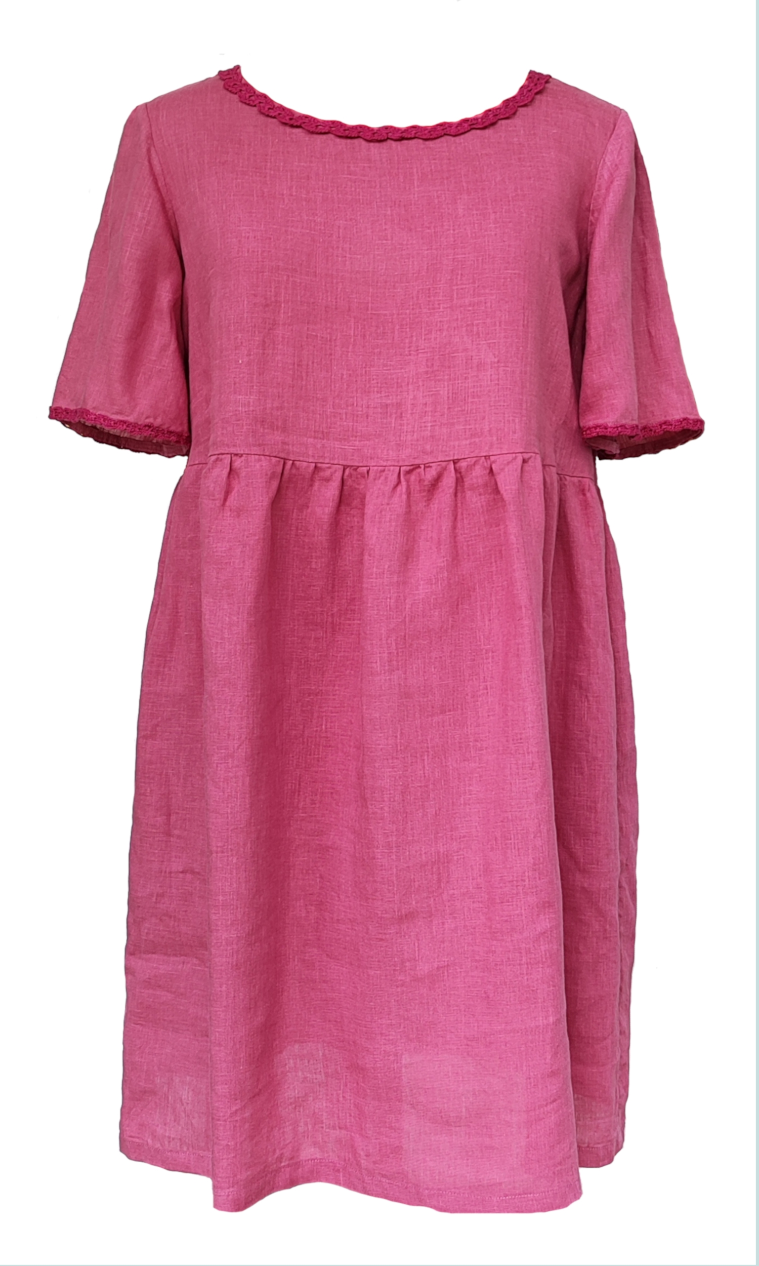 Robe en lin léger avec un dos crocheté de motifs grenades, ajoutant une touche d’élégance artisanale. Le crochet délicat crée un jeu de textures raffiné et unique. Parfaite pour un style estival, naturel et sophistiqué.